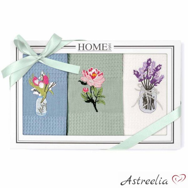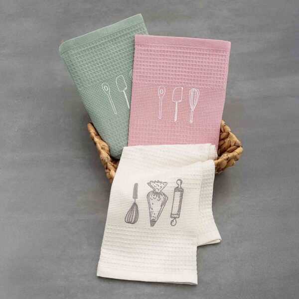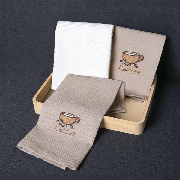 Кухонные полотенца изготовлены из 100% хлопка вафельного переплетения и украшены вышитой аппликацией.
