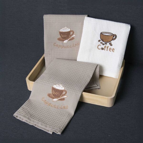 Кухонные полотенца изготовлены из 100% хлопка вафельного переплетения и украшены вышитой аппликацией.