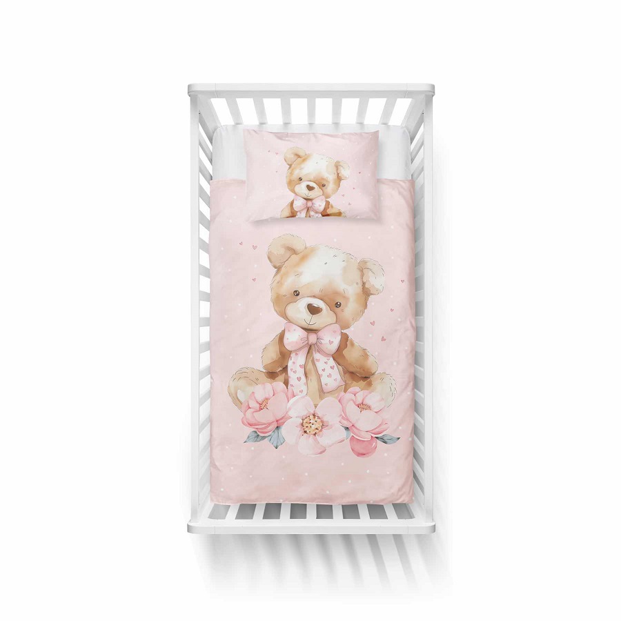 Kahepoolne puuvillane laste voodipesukomplekt 100×135 cm. – Teddy Bear