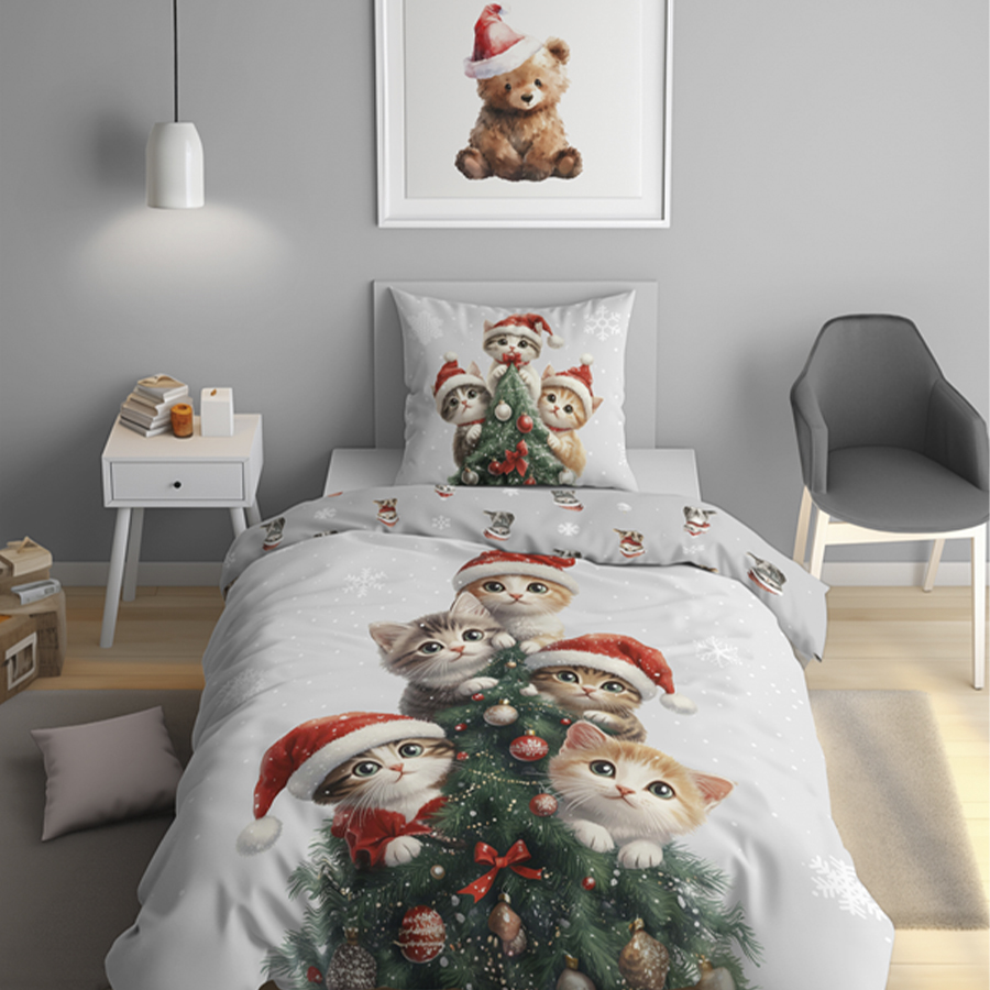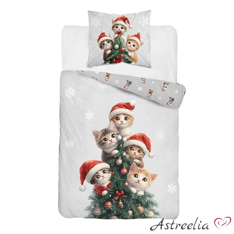 Puuvillane voodipesukomplekt 140×200 cm. – Snowflake Kitties